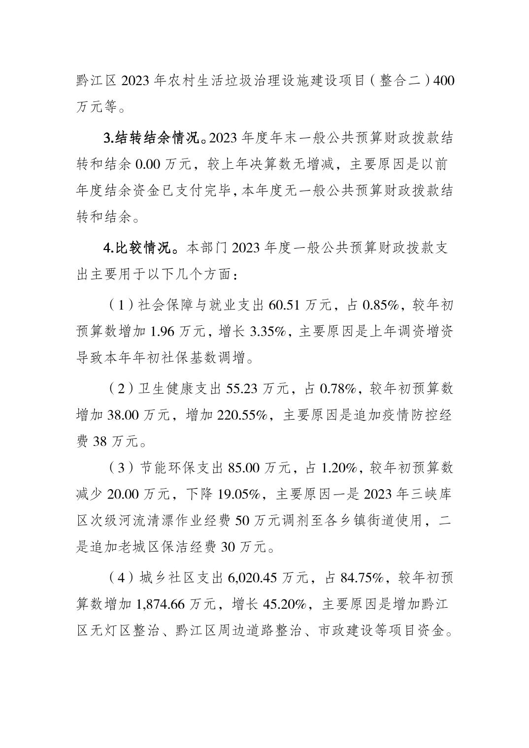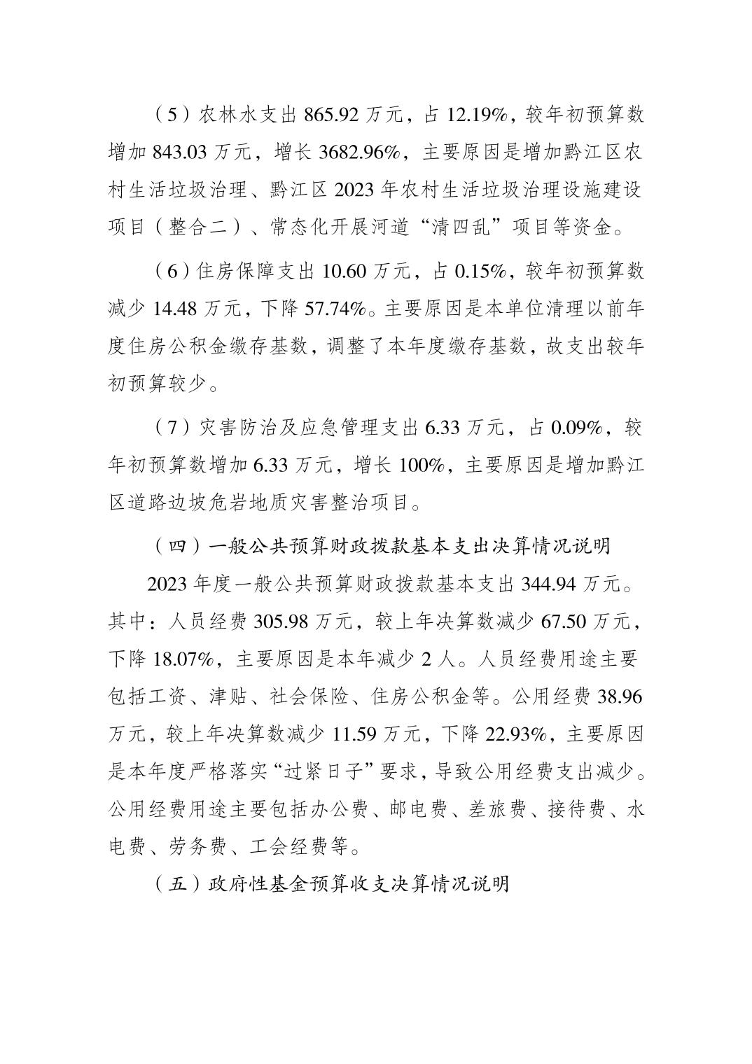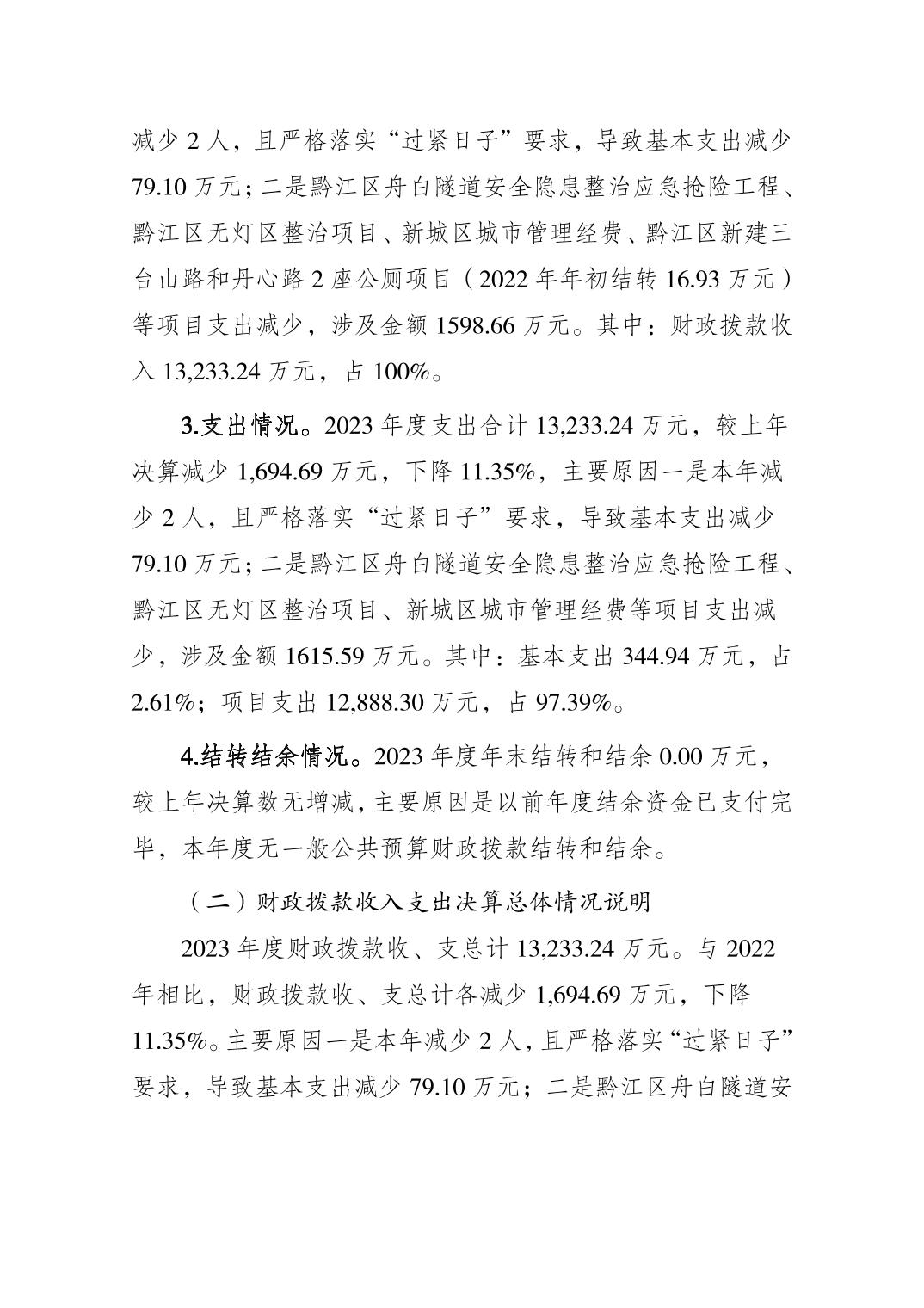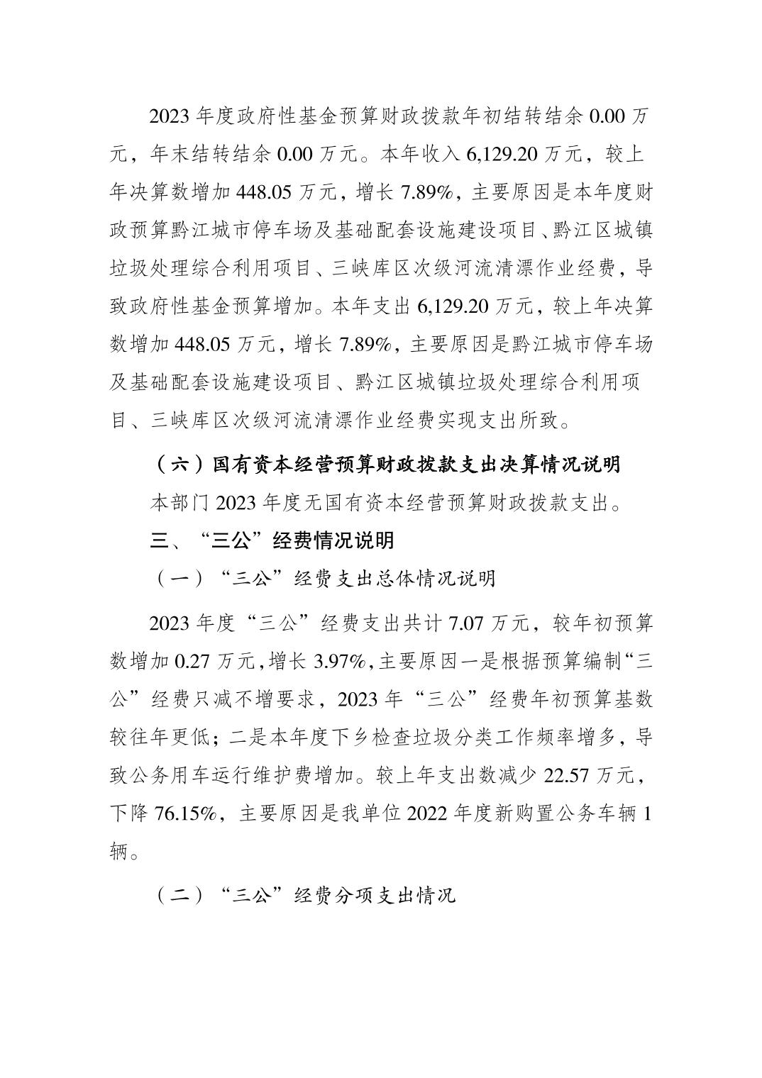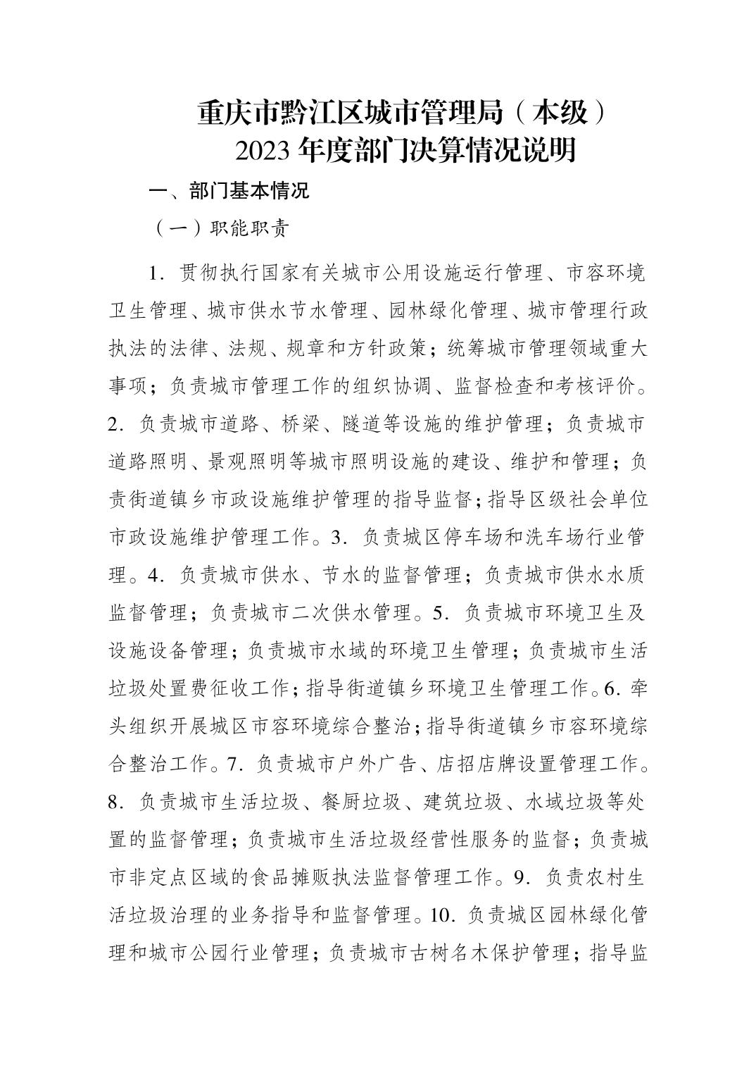 • 文件標題 重慶市黔江區城市管理局(本級) 2023年度部門決算情況說明