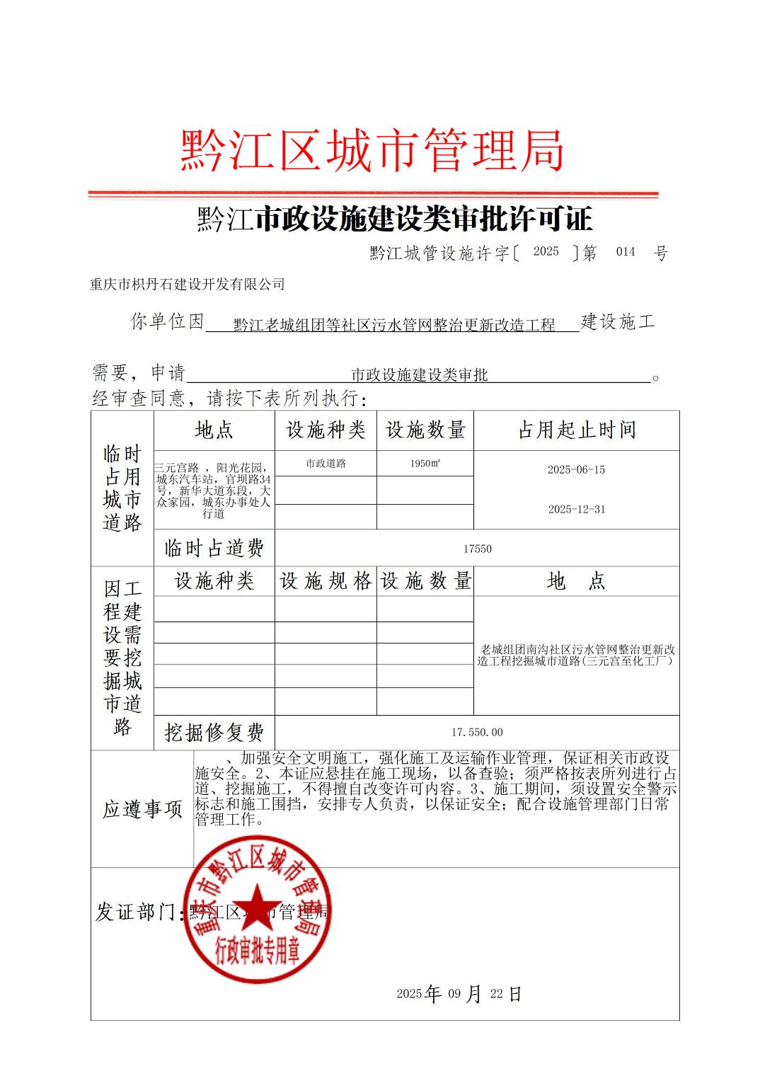 市政行政審批許可證(市政設(shè)施(2025)第014號(hào))">
