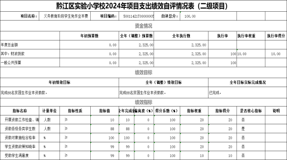 我單位對義務教育階段學生免作業本費開展了績效評價,涉及財政撥款項目資金 0.23萬元,評價得分 100 分,評價等次為A,績效評價未發現問題。