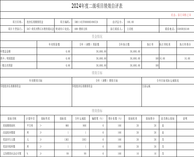 項(xiàng)目資金5萬元,評(píng)價(jià)得分100分,評(píng)價(jià)等次為A,績(jī)效評(píng)價(jià)沒有發(fā)現(xiàn)問題。