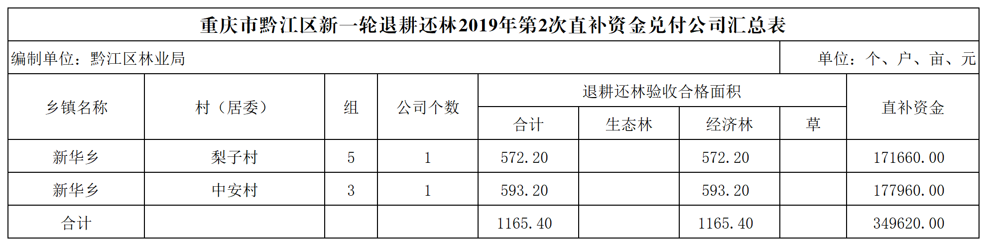 重慶市黔江區林業局2026年第二輪退耕還林3月補助資金兌付情況公示(白土鄉、小南海鎮、白石鎮、新華鄉、黃溪鎮)