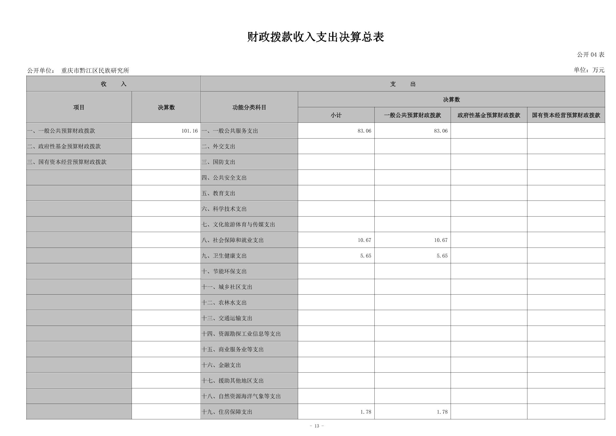 重慶市黔江區(qū)民族研究所2023年度決算公開說明">