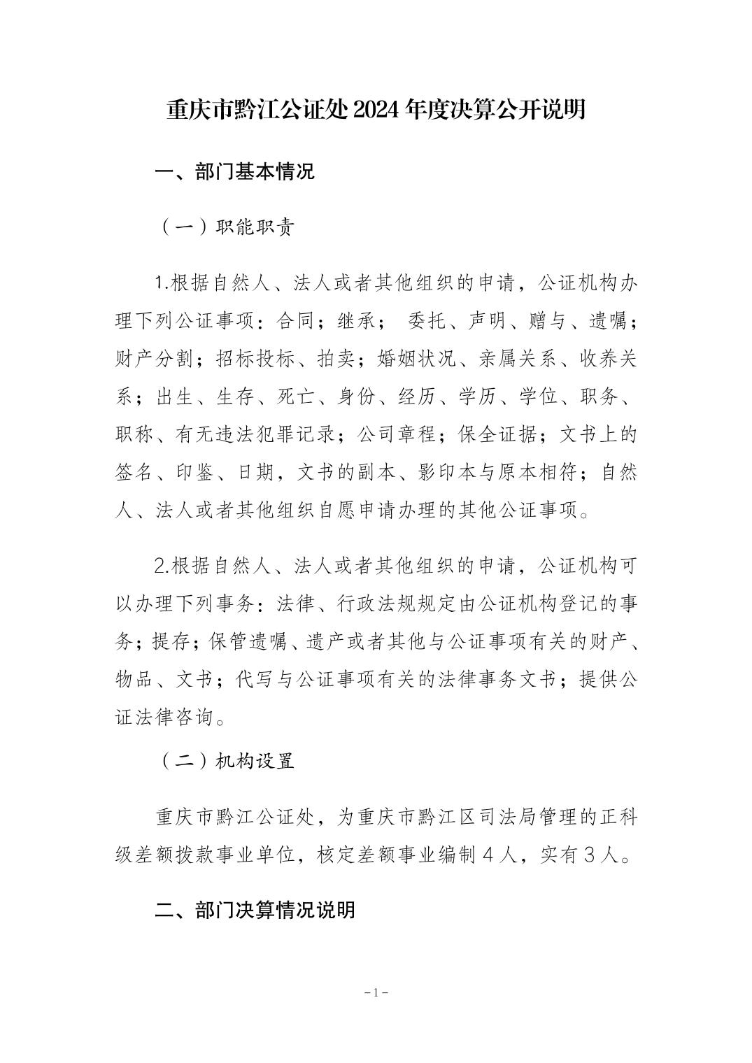 重慶市黔江公證處2024年度決算公開報告及公開報表">