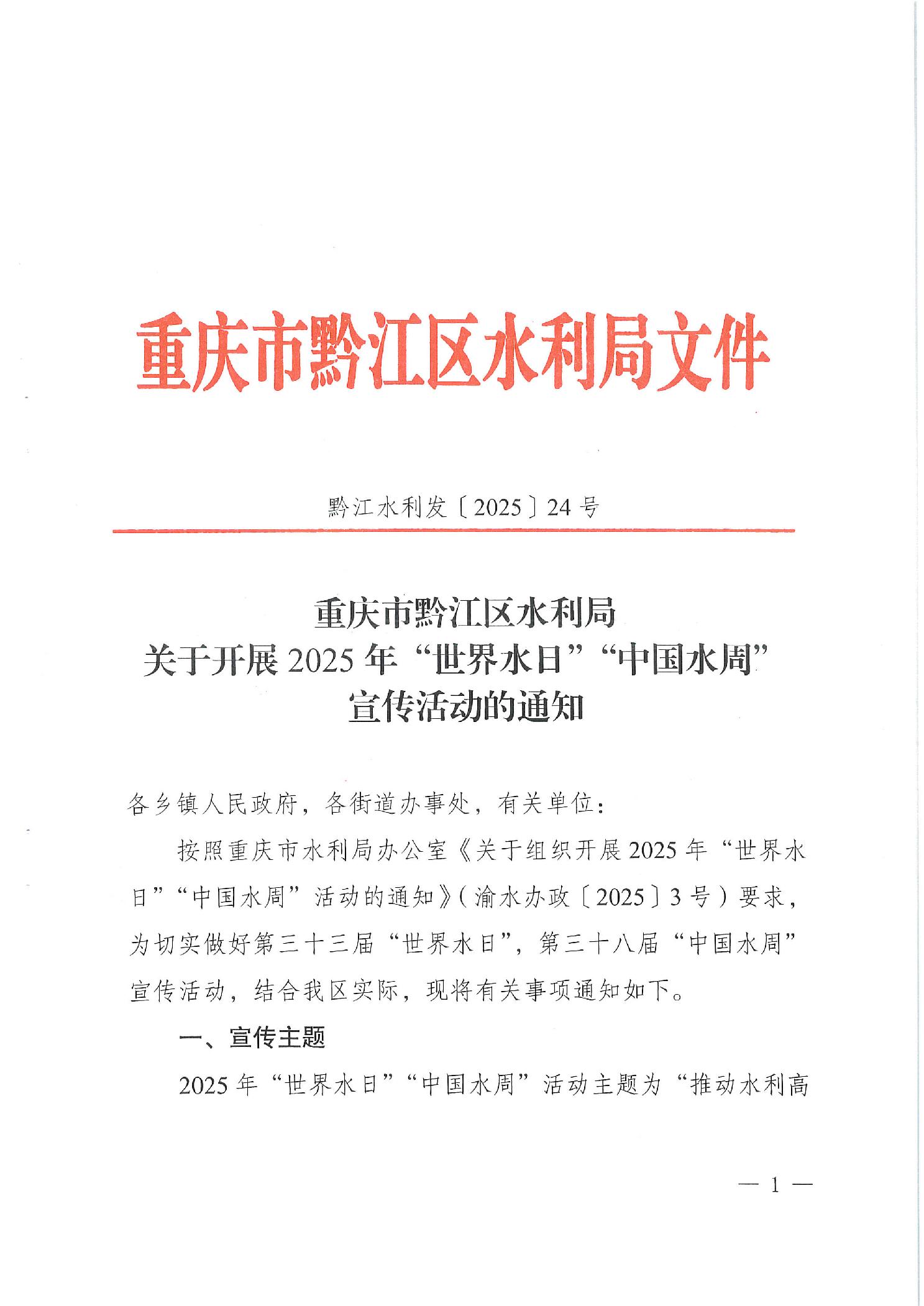 重慶市黔江區水利局開展2025年“世界水日”“中國水周”宣傳活動