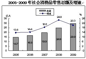 全年社會消費品零售總額實現29.92億元,比上年增長20.3%。分城鄉看,城區實現消費品零售額20.40億元,增長22.2%;農村實現消費品零售額9.52億元,增長16.4%。分行業看,批發零售貿易業零售額26.21億元, 增長19.9%;餐飲業零售額3.71億元,增長23.2%。