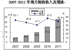 2011年,全區(qū)實(shí)現(xiàn)財(cái)政總收入37.76億元,比上年增長37.4%。實(shí)現(xiàn)地方財(cái)政收入22.85億元,增長50.5%,實(shí)現(xiàn)稅收收入8.83億元,其中增值稅和營業(yè)稅分別增長24.5%和49%。全年地方財(cái)政支出47.39億元,比上年增長34.5%,其中農(nóng)林水事務(wù)支出增長13.4%,教育支出增長27.1%,醫(yī)療衛(wèi)生支出增長44.8%,社會保障和就業(yè)支出增長21.6%,城鄉(xiāng)社區(qū)事務(wù)支出增長9.8%。