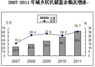 年末金融機(jī)構(gòu)存款余額119.97億元,比上年增長27.7%,其中城鄉(xiāng)居民儲蓄存款余額62.85億元,增長30.7%。金融機(jī)構(gòu)貸款余額74.82億元,增長14.7%,其中短期貸款18.3億元,增長34%, 中長期貸款56.52億元,增長10.7%。