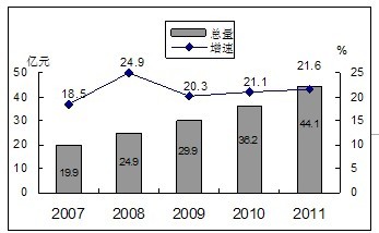 2011年社會消費(fèi)品零售總額實(shí)現(xiàn)44.07億元,比上年增長21.6%。分地區(qū)看,城鎮(zhèn)實(shí)現(xiàn)消費(fèi)品零售額31.15億元,增長22.2%;農(nóng)村實(shí)現(xiàn)消費(fèi)品零售額12. 92億元,增長20.2%。分行業(yè)看,批發(fā)零售貿(mào)易業(yè)實(shí)現(xiàn)零售額38.04億元, 增長21.9%;住宿餐飲業(yè)實(shí)現(xiàn)零售額6.03億元,增長20.4%。消費(fèi)對經(jīng)濟(jì)增長的貢獻(xiàn)率為41%,拉動經(jīng)濟(jì)增長8個(gè)百分點(diǎn)。
