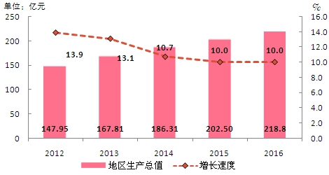 圖1 ?2012-2016年地區生產總值及其增長速度