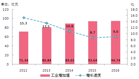 圖3 ?2012-2016年工業增加值及增速