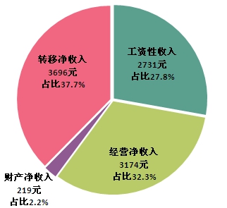 全年農村常住居民人均可支配收入9820元,比上年增加965元,增長10.9%。其中,工資性收入2731元,增長9.3%;經營凈收入3174元,增長14%;財產凈收入219元,增長17.1%;轉移凈收入3696元,增長9.2%。農村常住居民人均生活消費支出8329元,增加827元,比上年增長11%。