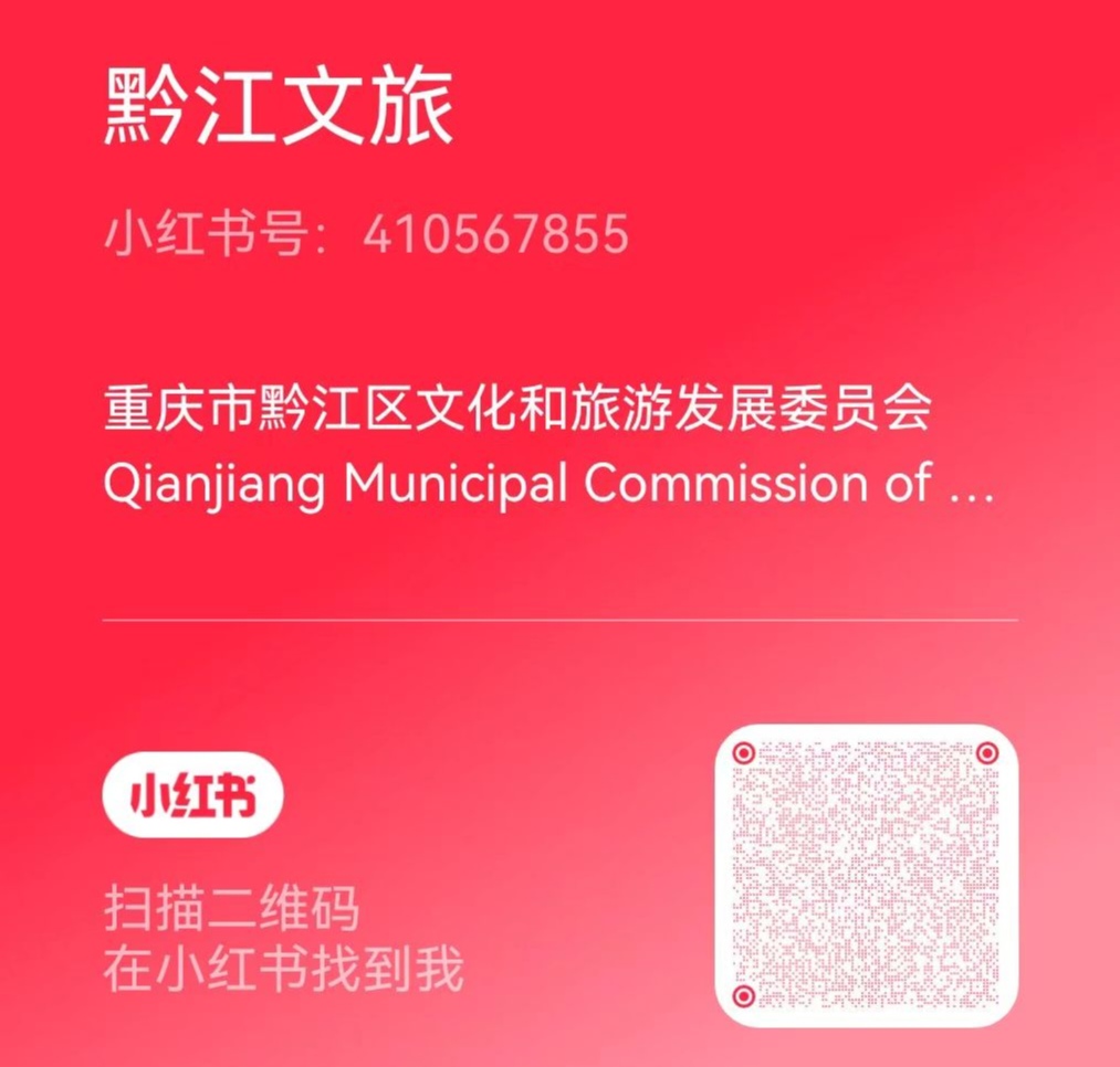 5.“黔江文旅”小紅書號(在小紅書中搜索“黔江文旅”,也可掃描二維碼關注)。