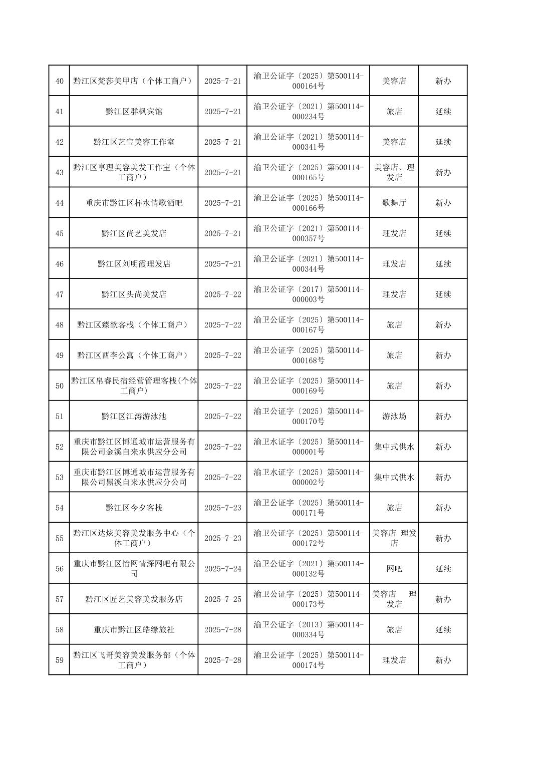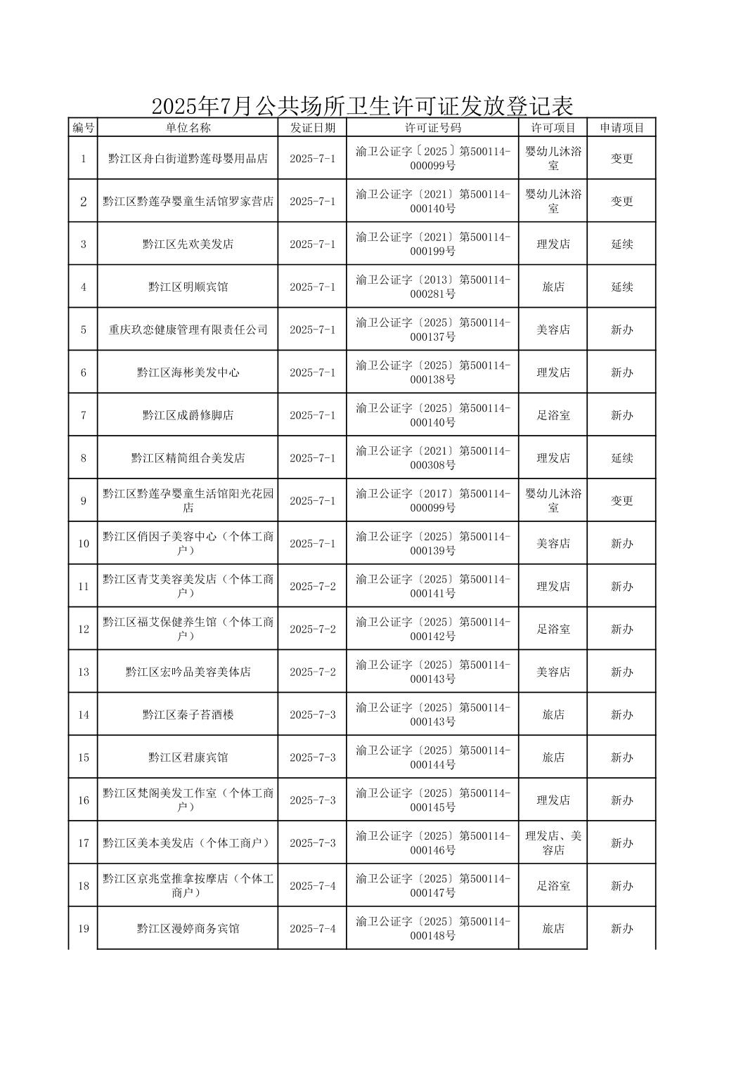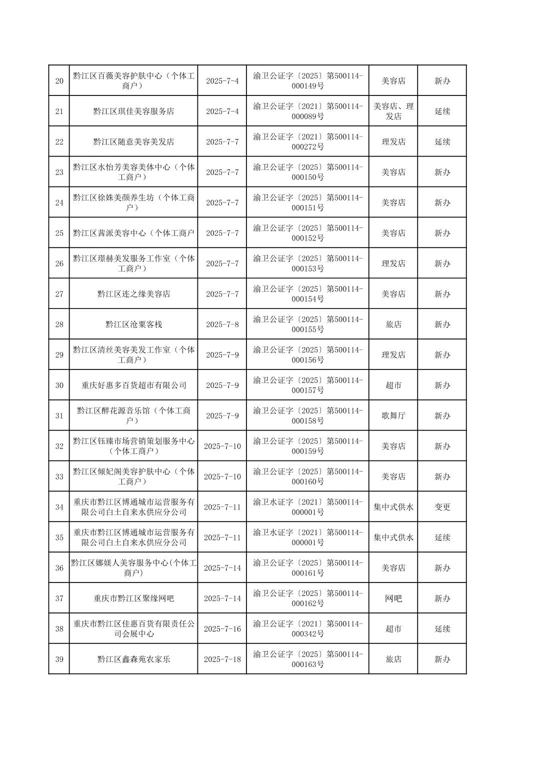 2025年7月行政許可辦理結果