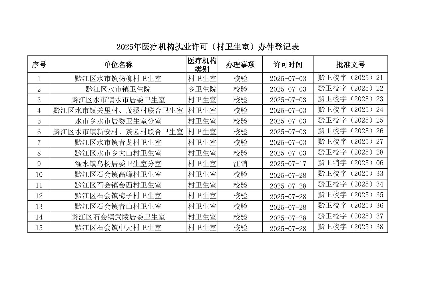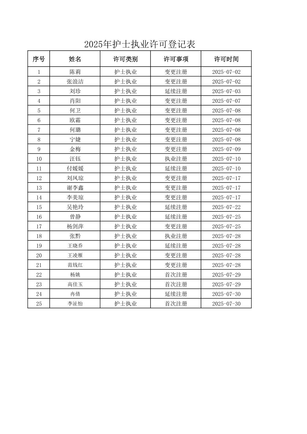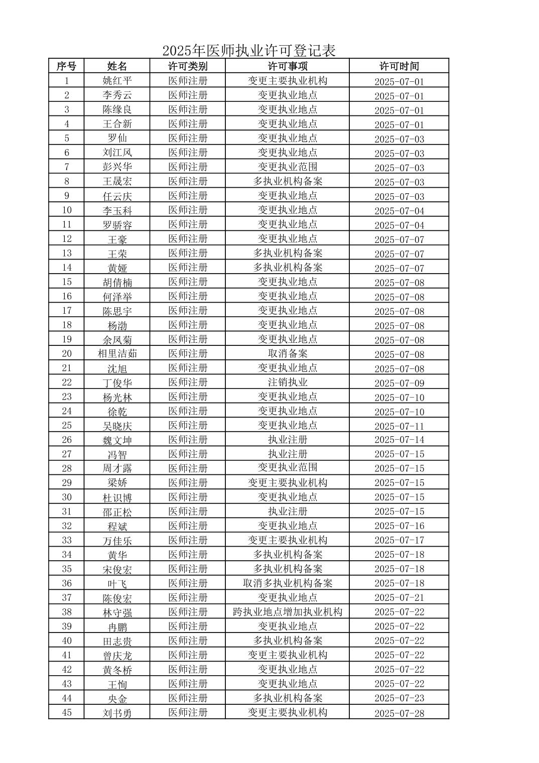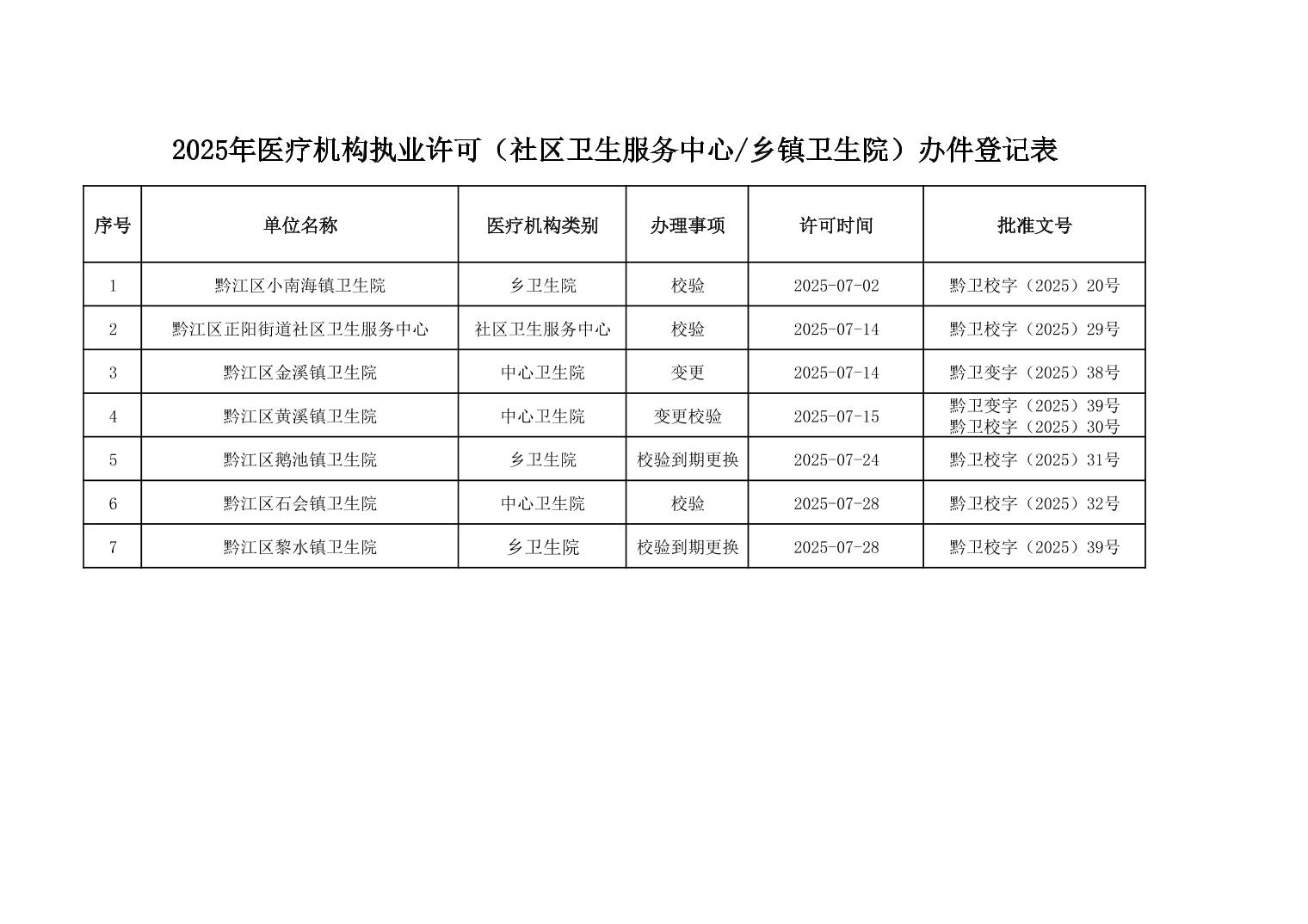 2025年7月行政許可辦理結果
