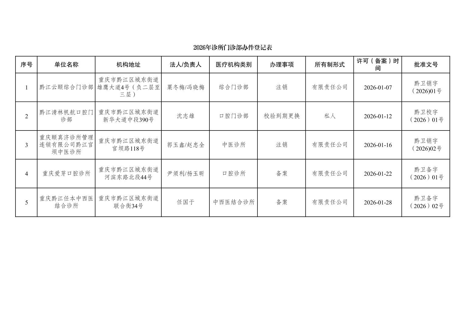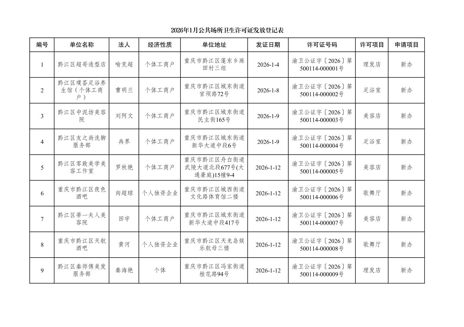 2026年1月行政許可辦理結(jié)果