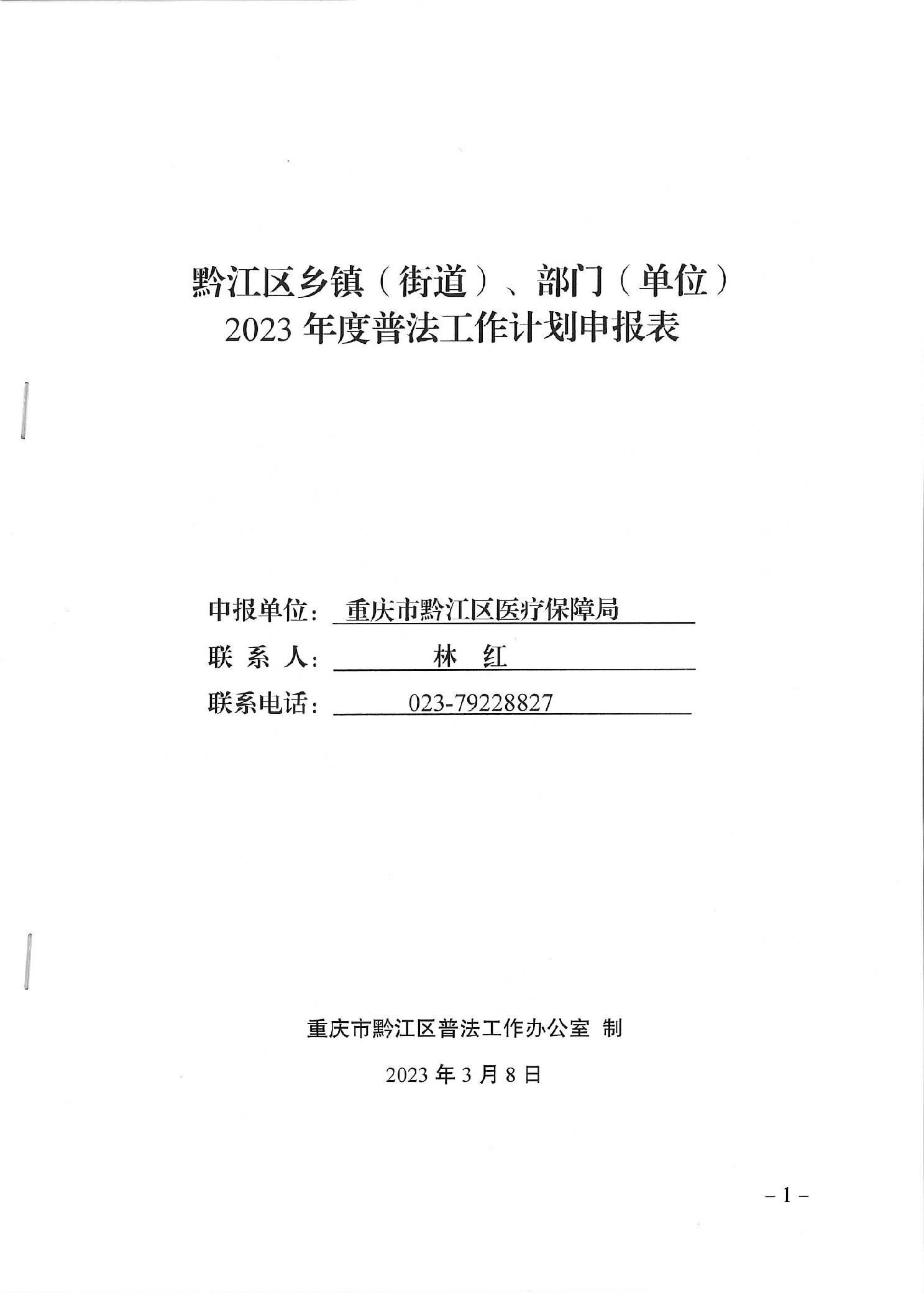 2023年度普法工作計劃申報表