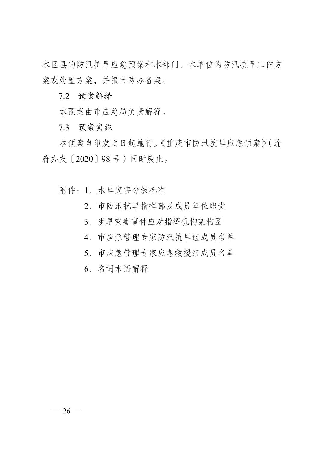 重慶市人民政府辦公廳關(guān)于印發(fā)重慶市防汛抗旱應(yīng)急預(yù)案的通知