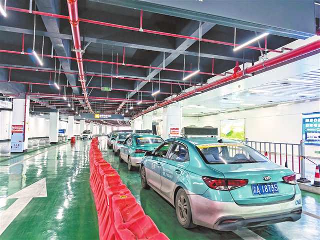 出租車在黔江高鐵站綜合交通樞紐出租車蓄車區文明有序候客