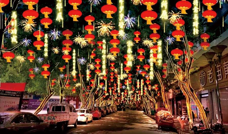 設計理念上,本次燈飾創新性提出“雙城共映”——老城區以“煙火賡續,風景日新”為主題,聚焦民生改善與歷史文脈守護;新城區則突出“恐龍生輝,星馳未來”,彰顯發展速度與現代活力。這一分區主題敘事,將宏觀戰略轉化為市民可感可及的光影場景,生動詮釋了城市在傳承中創新、在開拓中加速的發展故事。